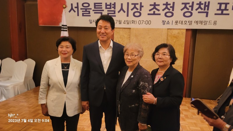 (사)부산시 여성단체협의회 최효자 회장과 조현숙 총무이사, 황윤미 사무국장이 7월4일 한국여성단체협의회의 서울시장 초청 정책 포럼 행사에 초대 받아 참석했다.