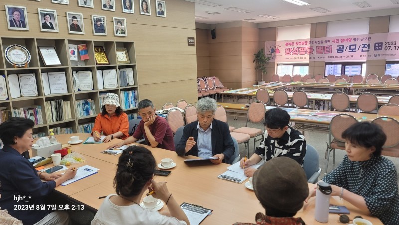 23년8월7일 양성평등공모전 심사 페이지 정보 작성자 최고관리자 작성일23-11-20 16:49 조회1,575회 관련링크 이전글 다음글 목록 본문 심사기준을 회의하는 사진2023년 양성평등공모전 작품을 심사하는 사진23년양성평등공모전 그림부문 출품작들 이전글 다음글 목록