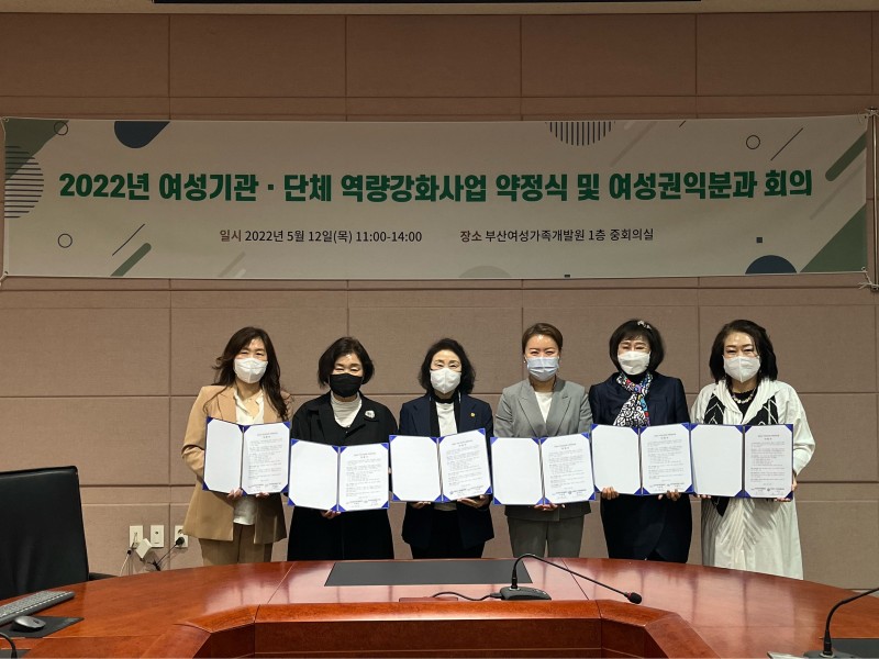 (사)부산광역시여성단체협의회(회장 천영희)는 2022년 5월 12일(수) 오전 11시, 부산여성가족개발원 중회의실에서 개최된 '2022년 여성기관·단체 역량강화사업 약정식 및 여성권익분과 2차 회의'에 참석했다.