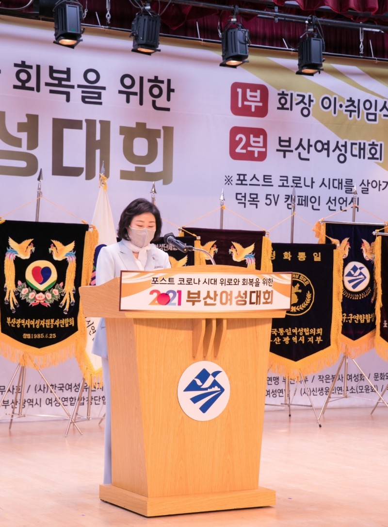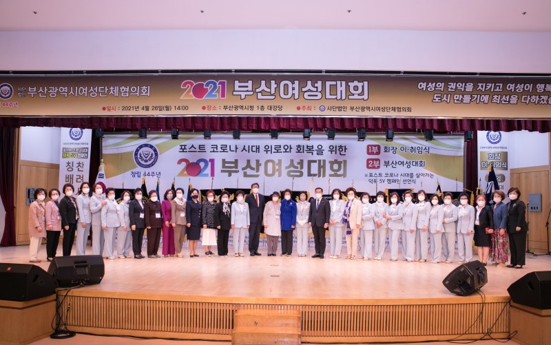 코로나19 방역과 감염예방을 위한 마스크 착용, 거리두기 등 예방수칙을 준수한 가운데 행사 인원을 최소화한 이날 대회에는 박형준 부산광역시장, 신상해 부산시의회 의장, 윤원호 전 국회의원(부산여협 고문) 등 여성 지도자와 여성단체협의회원이 참석해 대회를 축하했다.