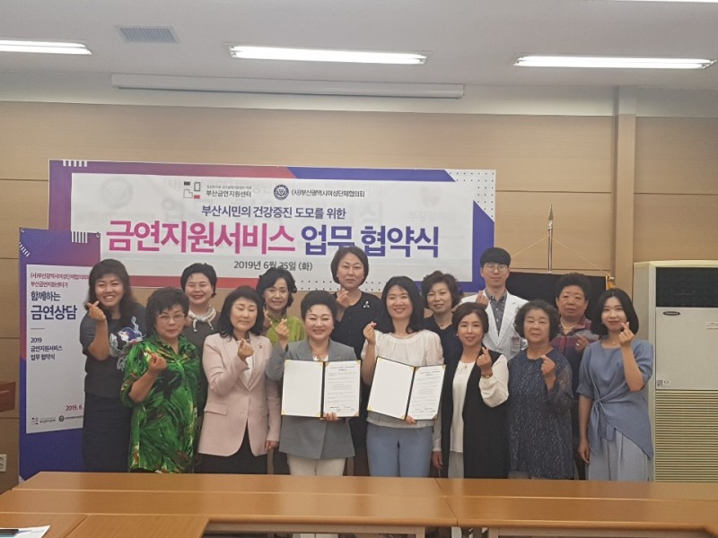 부산시민의 건강증진 도모를 위한 금연지원서비스 업무 협약식 페이지 정보 작성자 최고관리자 작성일19-07-02 13:16 조회3,164회 관련링크 이전글 다음글 목록 본문 ◉ 행 사 명 : 부산시민의 건강증진 도모를 위한 금연지원서비스 업무 협약식◉ 일 시 : 2019년 6월 25일(화) ◉ 장 소 : 부산광역시 여성단체협의회 ◉ 주 최 : 부산금연지원센터, (사)부산광역시여성단체협의회 이전글 다음글 목록