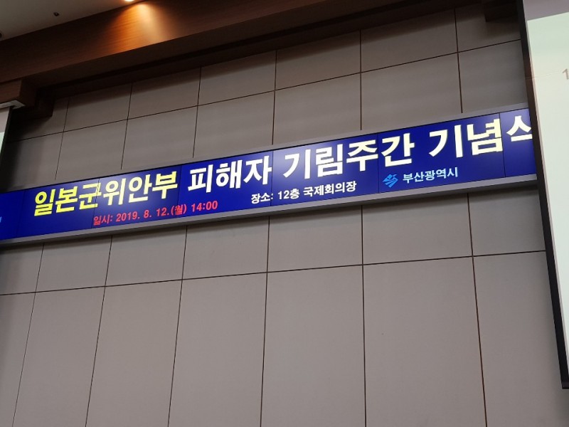 일본군 '위안부' 피해자 기림의 날 페이지 정보 작성자 최고관리자 작성일19-08-19 15:33 조회3,029회 관련링크 이전글 다음글 목록 본문 ◉ 행 사 명 : 일본군 '위안부' 피해자 기림의 날◉ 일 시 : 2019년 8월 12일(월)◉ 장 소 : 부산광역시 시청 대회의장 ◉ 주 최 : 부산광역시 이전글 다음글 목록