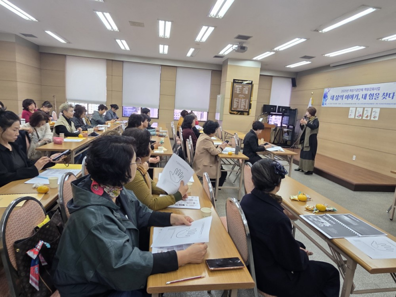 오후 프로그램은 조규옥 강사의 특강 ‘내 삶 이야기, 내 힘을 찾다 — 손바닥 자서전 쓰기’로 이어졌다. 참가자들은 각자의 인생 여정을 짧은 글로 정리하며 자신이 걸어온 삶의 의미를 되새겼다. 조 강사는 “기억을 쓰는 행위는 자기 회복의 시작”이라며 “여성들이 자신을 믿고 다음 단계를 향해 나아가길 바란다”고 격려했다.