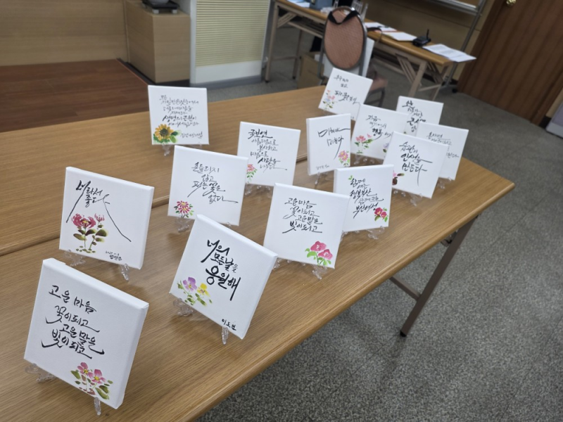 오전에는 감성과 여유를 주제로 한 ‘캘리 그라피 좌우명 쓰기’ 체험이 진행됐다. 참가자들은 자신만의 인생 문장을 직접 써 내려가며 내면을 성찰하고, 글을 통한 예술적 자기표현의 즐거움을 나눴다.