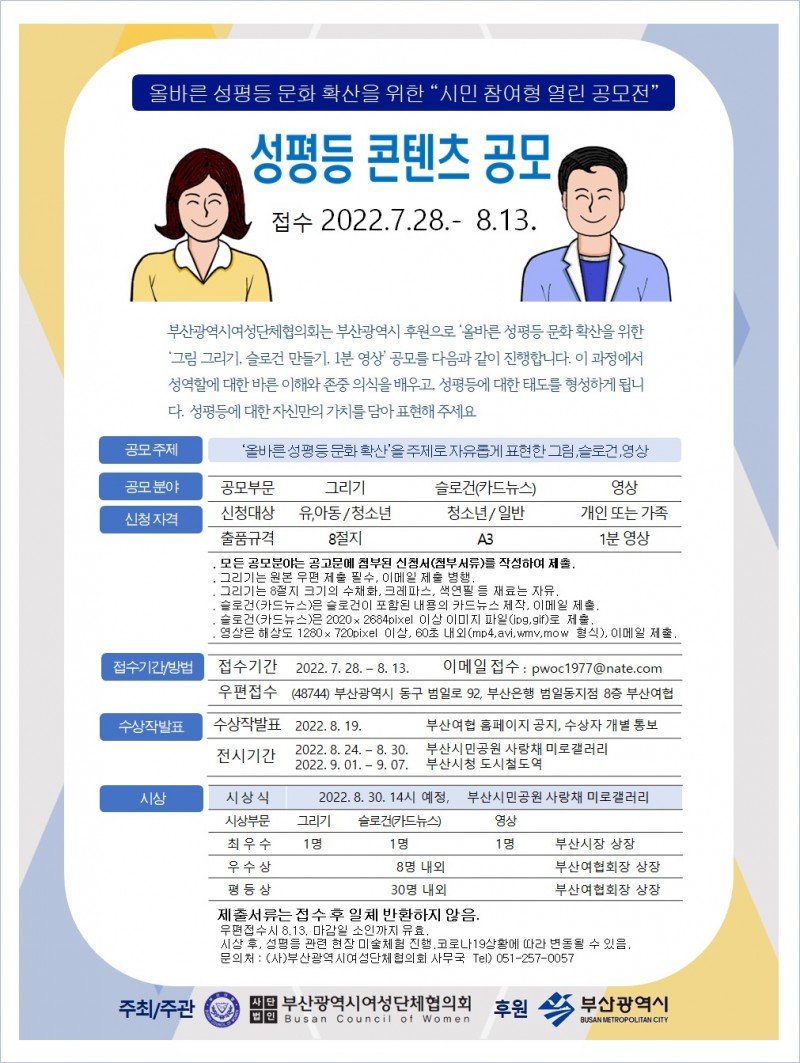 (부산여성단체협의회) 올바른 성평등 문화 확산을 위한 “시민 참여형 열린 공모전” (7.28~ 8.13)
