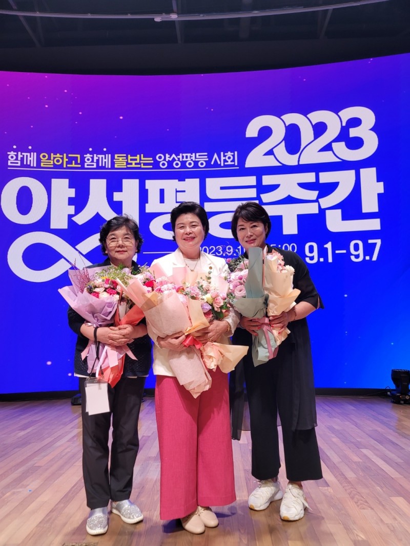 부산여성단체협의회 최효자 회장 대통령 표창 수상 (2023. 9. 1) 페이지 정보 작성자 최고관리자 작성일23-11-21 14:36 조회3,481회 관련링크 http://www.womennews.co.kr/news/articleView.html?idxno=239996 2519회 연결 이전글 다음글 목록 본문 9월1일 양성평등주간을 맞아 정부가 ‘2023년 양성평등주간 기념식’을 개최하여 양성평등 사회 촉진에 공헌한 유공자들에게 감사의 뜻을 전하는 표창 수여식을 열었다. 부산여성단체협의회 최효자 회장은 이 수여식에서 지역사회 현장에서의 여성 권익 신장, 양성평등 사회 구현을 위해 봉사한 공을 인정 받아 대통령 표창을 수상하였다. 이전글 다음글 목록