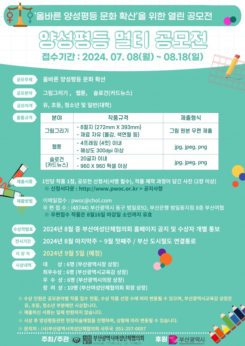 부산광역시여성단체협의회는 우리 사회의 양성평등에 대한 올바른 태도 및 인식 제고를 위하여 다음과 같이