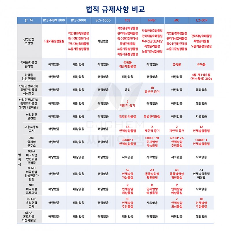 TCE(트리클로로에틸렌), MC(메틸렌클로라이드), 1.2-DCP(1,2-디클로로프로판)의