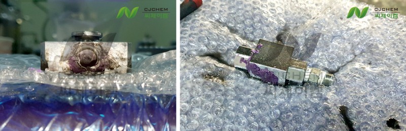 (MC 대체) 도포건(노즐) 우레탄 계열 수지 제거 세척 사례
