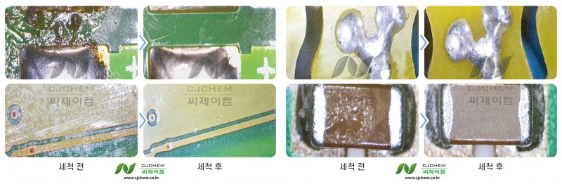 플럭스 세척제로 적용 가능한 BCS 제품으로는 BCS-NEW1000, BCS-3000, BCS-5000 이 있습니다. 제품 각각의 특성이 다르고 또, 업체마다 공정이 다르기 때문에 똑같은 플럭스를 제거하더라도 TEST 결과는 저마다 다르게 나올 수 있습니다. 따라서 저희 씨제이켐이 제품의 TEST를 진행한 후 가장 적합한 제품으로 사용하실 수 있도록 도와드리고 있습니다.
