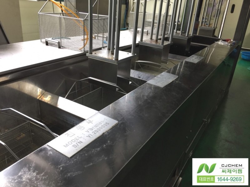 기존에 5조식 복합 초음파 체척조를 사용하시고, 생분해성 다목적 세척제(퐁퐁의 농도 30배)를 물에 희석을