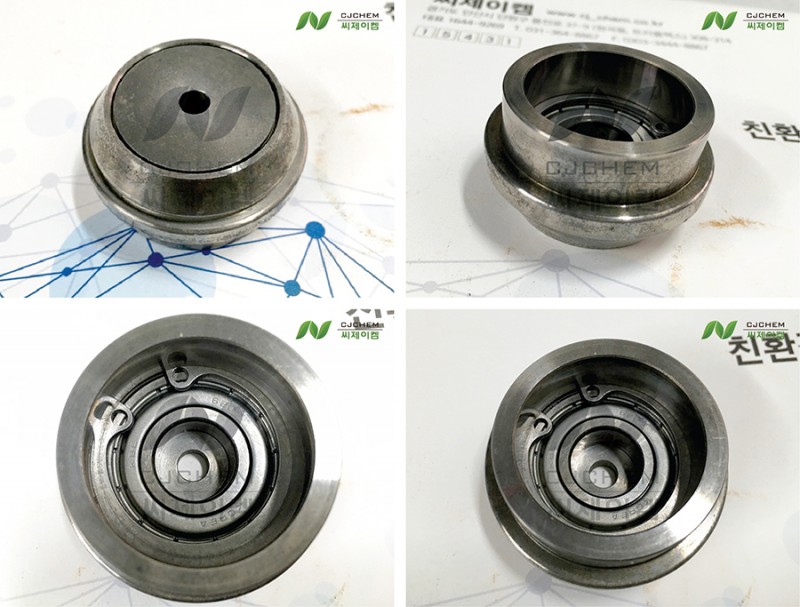 아래 사진은 오랜 시간 방치되어 녹으로 표면에 두껍게 도포되어 있는 스테인리스(SUS) 부품의 모습입니다. CJC-2000제품은 수용성 제품으로 오염도의 따라 희석하여 사용도 가능하지만 사진의 부품과 같이 뚜껍게 자리 잡은 녹을 제거하기 위해서는 긴 러닝타임으로 원액을 적용해야 효과를 보실 수 있습니다.