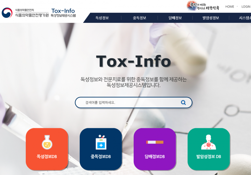 독성정보제공시스템 ‘톡스인포’(http://nifds.go.kr/toxinfo)의 사용자 접근성을 높이고, 생활 속 유해물질 600건의 독성정보를 추가하는 등 확대 개편해 선보였다.