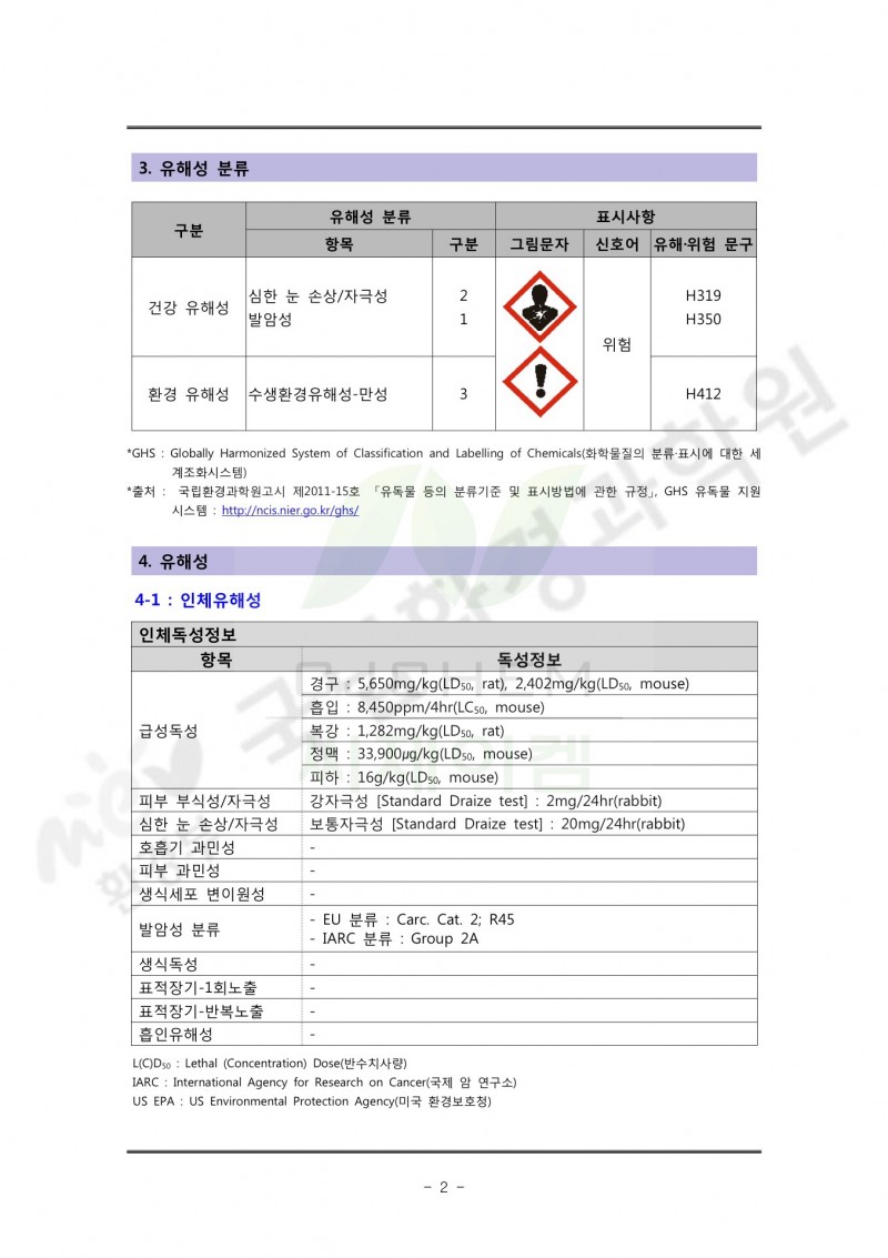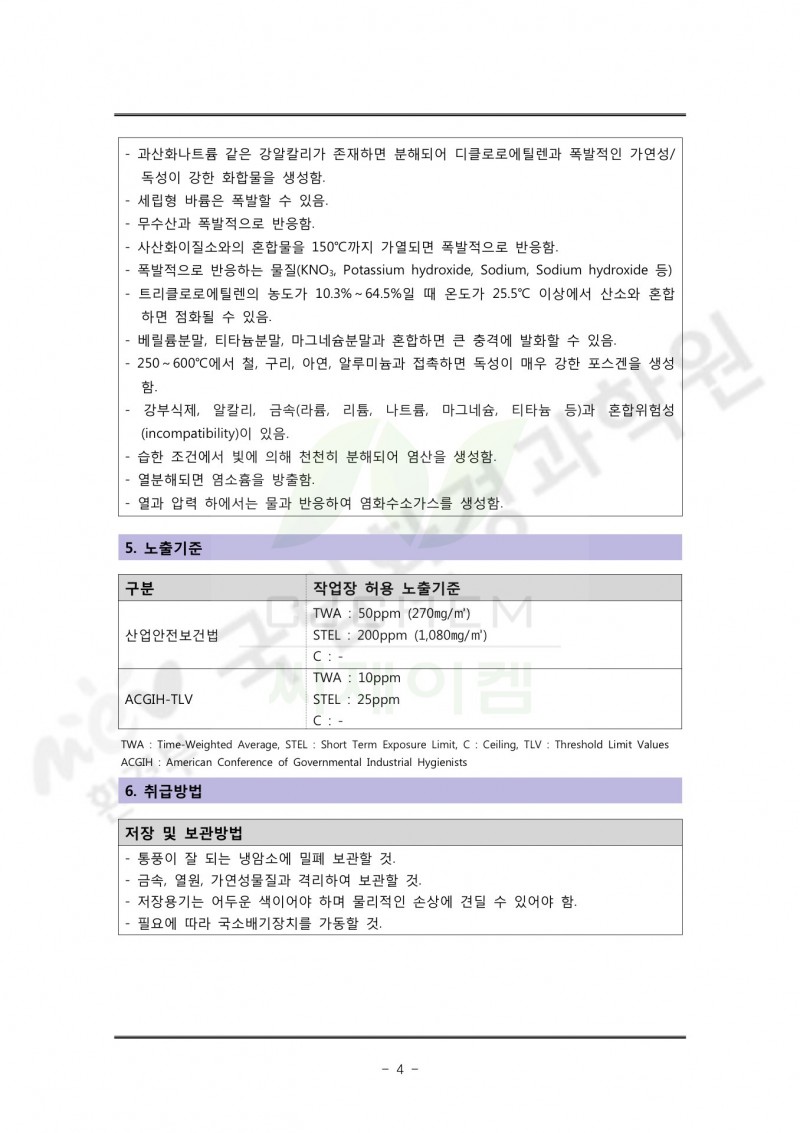 (TCE) 트리클로로에틸렌 유독물 성상과 독성 및 관리 정보 요약서 페이지 정보 작성자 씨제이켐 작성일18-04-06 23:24 조회6,852회 관련링크 이전글 다음글 목록 본문 이전글 다음글 목록