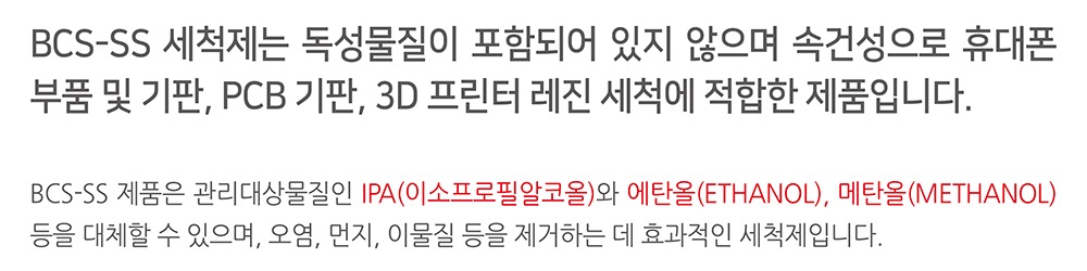 - 1. IPA(이소프로필알코올), 에탄올, 메탄올 등을 대체할 수 있습니다.