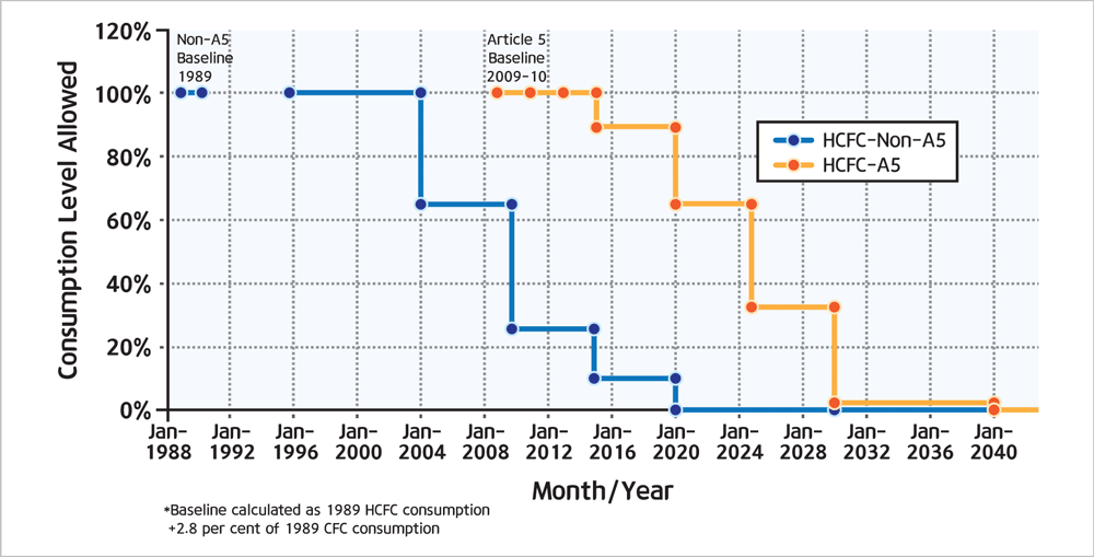 몬트리올 의정서에 따른 HCFC 감축 일정