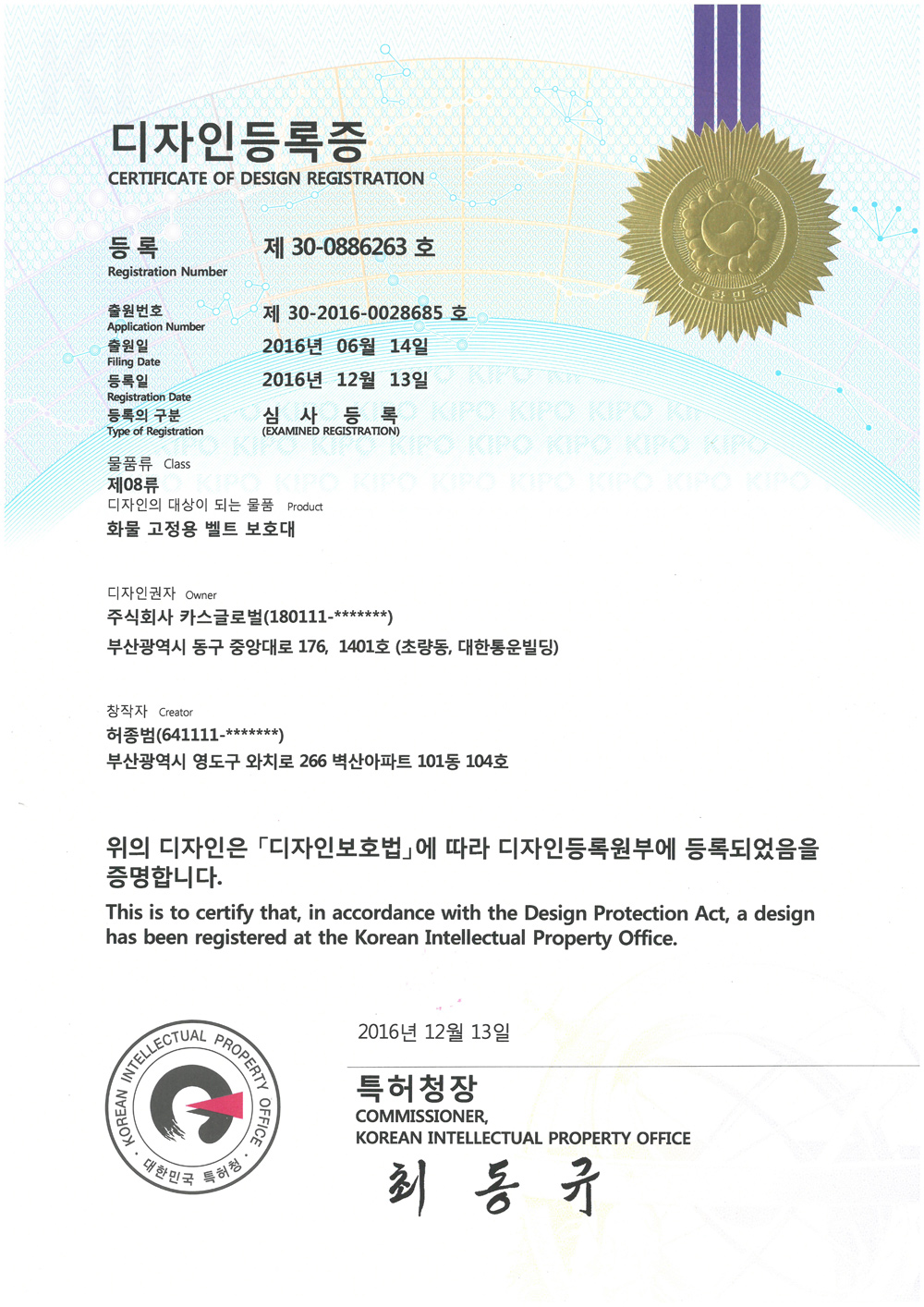 화물-고정용-벨트-보호대-(디자인등록증)