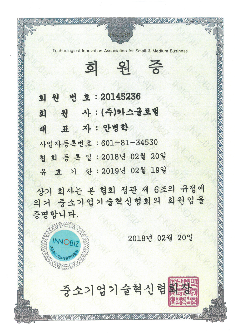 인증서 | 중소기업기술혁신협회 회원증 페이지 정보 작성자 운영자 작성일18-05-18 15:34 조회2,631회 댓글0건 이전글 다음글 목록 본문 중소기업기술혁신협회 회원증 이전글 다음글 목록