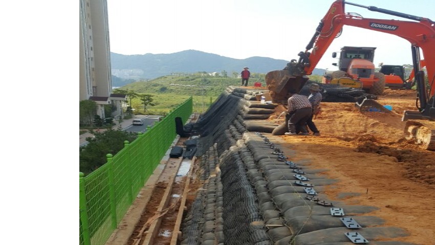 보강토옹벽공사 / 석축공사 / 콘크리트옹벽공 / 토공사토목용보강재 / 보강토연결클립 / 보강토블록