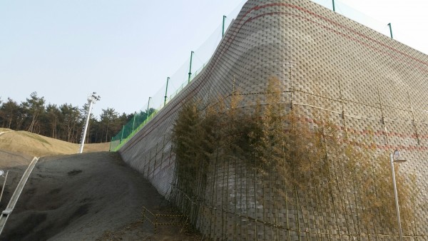 *토목지반을 보강하고 특히 보강토옹벽설치에 중요한 역할을 담당하여 보강토블록과 뒷채움토사가 하나가 될 수 있도록 고정시켜주는 인장강도와 신도가 기준치를 통과하여야 한다.