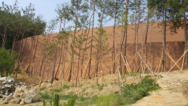 *토목지반을 보강하고 특히 보강토옹벽설치에 중요한 역할을 담당하여 보강토블록과 뒷채움토사가 하나가 될 수 있도록 고정시켜주는 인장강도와 신도가 기준치를 통과하여야 한다.