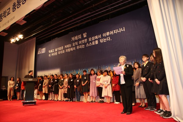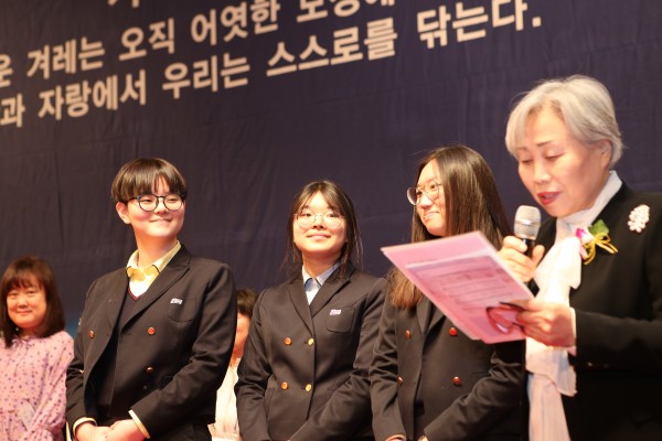 위에서부터 장학회 고액기부자(문화숙(37회)) 시상, 감사보고, YG동문 환영식, 52회~60회,93회 재학생 등