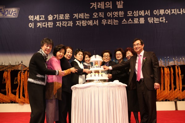 위에서부터 만세삼창, 교가 제창, 92회 축하 케잌컷팅