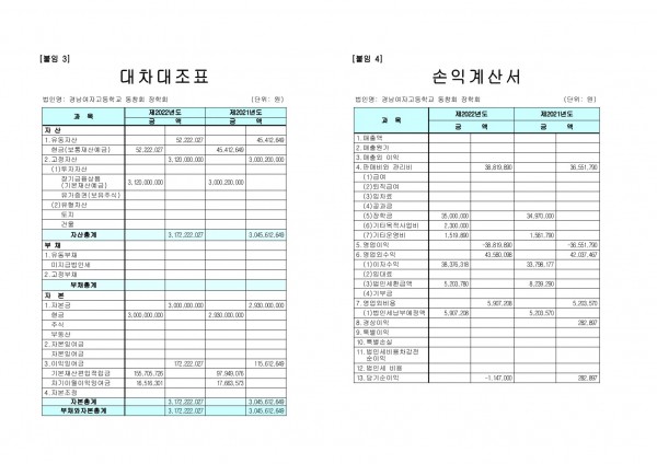 2022년 경남여고동창회장학회 2022년 사업결산사 공시