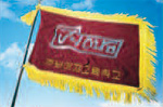 - 교기에 도안한 교표는 1945년 11월 7일 직사각형 모양에 글자는 금색으로 "경남"의 두 글자를 한글로 가로 풀어 도안하였다.