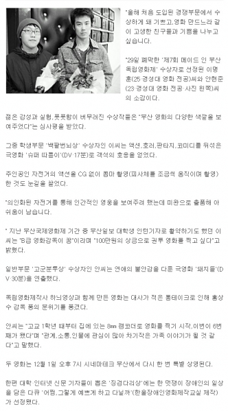 본원출신 이명훈 감독 '메이드 인 부산 독립 영화제' 수상!!! 페이지 정보 작성자 최고관리자 작성일17-05-15 15:57 조회2,333회 관련링크 이전글 다음글 목록 본문 본원출신 이명훈 감독 '메이드 인 부산 독립 영화제' 수상!!! 이전글 다음글 목록