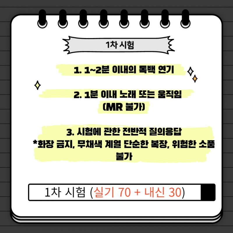 ★ 2차 시험 (제시+즉흥 40, 독백+특기 40, 구술 20)