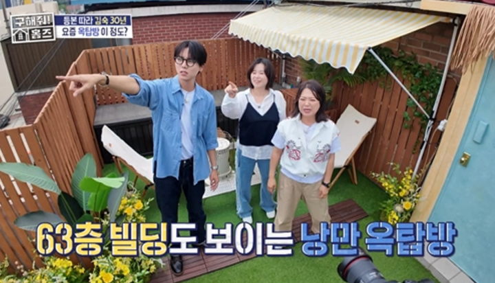 세 사람은 신길동에 위치한 옥탑방을 임장했다. 김숙은 “매물은 아니지만, 옥탑방의 인식을 180도 바꿔주는 곳이다.”라고 소개했다. 가파른 계단을 오른 끝에 만난 옥탑방의 마당은 동남아 리조트를 방불케 할 정도로 낭만 인테리어로 꾸며져 있었으며, 63층 빌딩까지 막힘없이 감상할 수 있었다. 내부 역시 유니크 하면서 조화로운 가구들이 자리 잡고 있었으며, 유럽 감성의 아기자기한 소품들로 채워져 모두를 놀라게 했다.