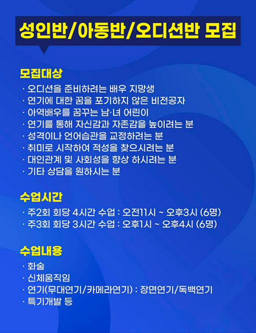 5. 성인반(취미반) : 성인 및 취미 (성인배우 지망생)