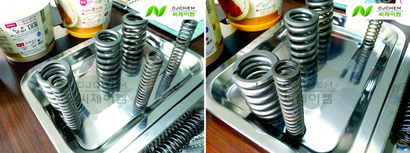 자동차 스프링의 방청유를 세척하는데 기존에는 TCE를 사용하시다가 MC로 교체한 후 오랫동안 사용하셨습니다. 하지만 최근에 MC가 유독물로 지정되었고 기타 법적인 규제로 인하여 계속 사용이 어려워 저희 씨제이켐의 친환경 세척제로 교체 문의하셨습니다.