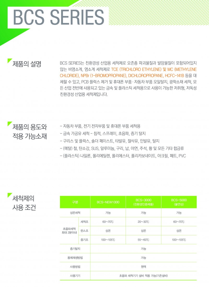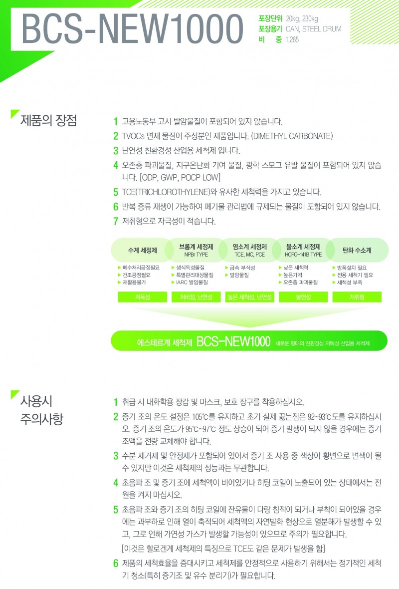 HCFC-141b 대체 체척제로 BCS-NEW1000 번으로 대체 적용 페이지 정보 작성자 씨제이켐 작성일18-08-17 20:22 조회3,023회 관련링크 이전글 다음글 목록 본문 전자 부품 세척을 하는 업체로써 HCFC-141B 를 세척액으로 초음파 기계에 세척액으로 사용하고 계셨습니다. 하지만 쿼터 제한으로 원활한 공급이 되지 않고, 지속적으로 단가 인상으로 회사의 원가 부담으로 어려움을 겪고 계셨습니다. 앞으로도 더욱 심해질 쿼터 제한으로 대체 세척제를 찾게 되었고 법의 제한을 받지 않고 작업자들에게 유해하지 않은 친환경성 산업용 세척제 BCS 로 대체 하게 되었습니다. 이전글 다음글 목록