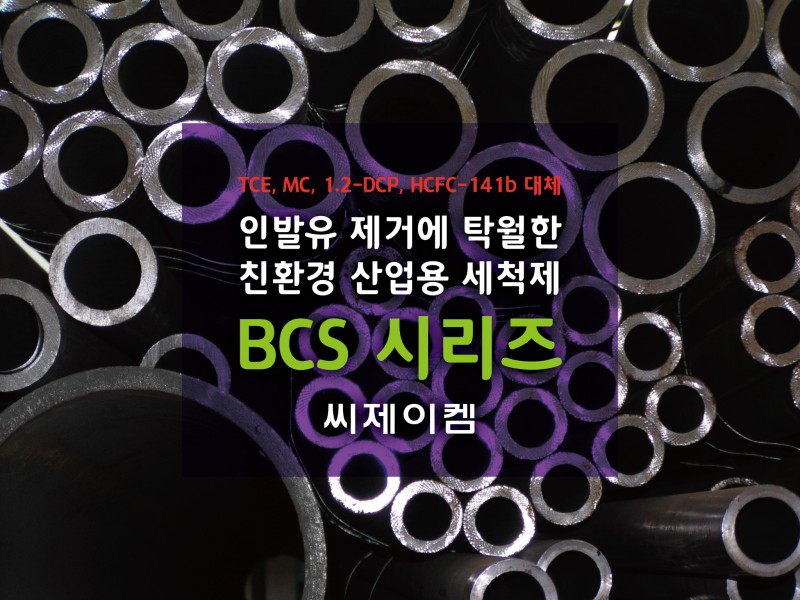 알미늄(알루미늄)파이프, 서스(SUS,스테인레스)파이프, 구리파이프, 동파이프 등 파이프 인발유 제거와 절삭유, 각종 가공유 제거에도 탁월한 친환경성 산업용 세척제 BCS SERIES 세정제
