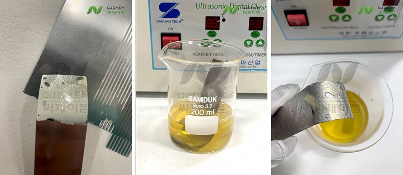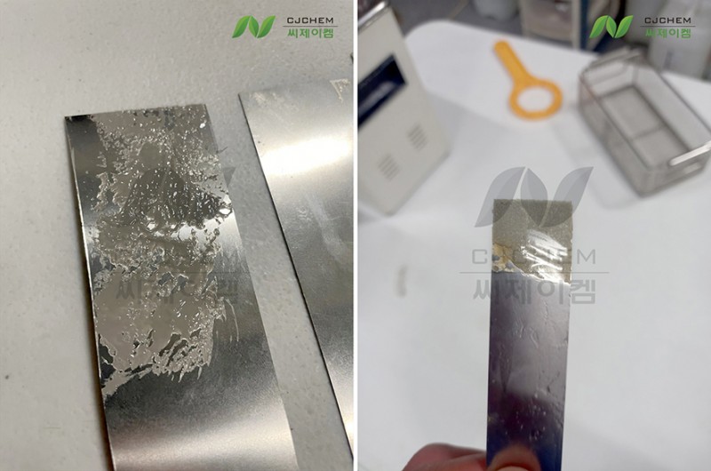 휴대폰·반도체 부품, 전기·전자 부품 등에 많이 사용되는 실리콘, 경화제 등을 제거하는 용도로 세척제 문의가 많이 오고 있습니다. 특히 이미 경화되어 버린 상태에서는 제거에 더 어려움이 있는데요, 최근 문의주신 업체에서는 직접 개발한 경화제를 제거할 수 있는 세척액을 찾고 계셔 저희 씨제이켐에 테스트 요청을 하셨습니다.