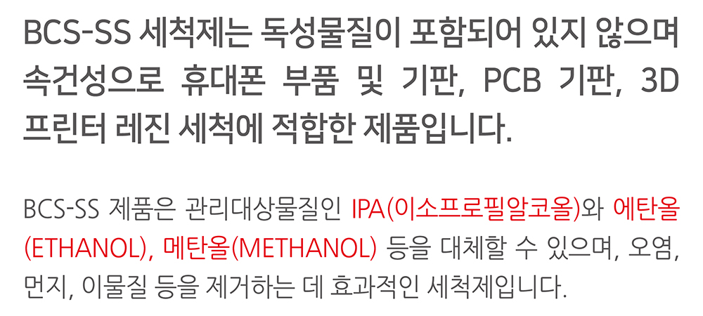 - 1. IPA(이소프로필알코올), 에탄올, 메탄올 등을 대체할 수 있습니다.