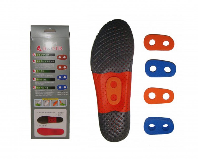 인솔 뒷면에 부착된 패드는 사람마다 아치형성이 다르므로 착화시 알맞은패드를 부착하여 착용하여 시간이흘러 아치부분이 낮게느껴지면 더단단하고 더뚜꺼운패드로 교체붙여서 착용 바랍니다 그러면 무너진 아치를 바로잡는데 도움을 줄수 있습니다.(아치높낮이조절패드내장)