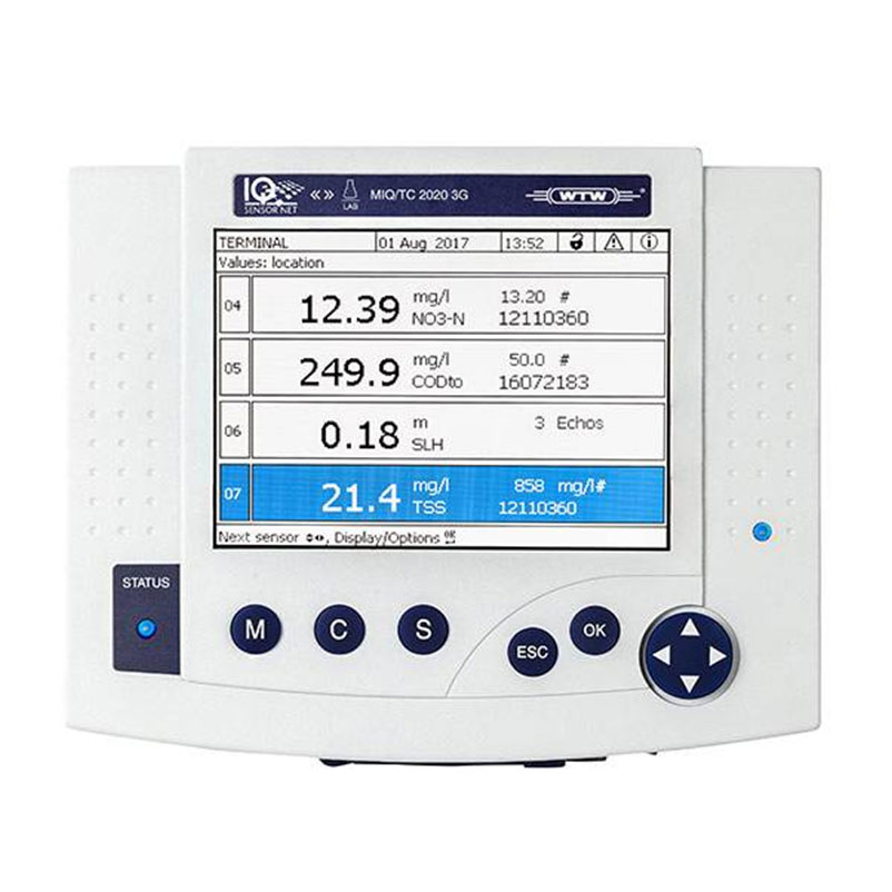 제조사 WTW(독일) 표시 LCD, graphic, 320x240 pixel 센서부착 최대 20개의 센서 신호출력 DC 4-20mA 낙뢰보호 낙뢰 보호회로 내장 설치온도 -25 ° C ~ 65 ° C 전원 100-260VAC 50/60Hz 측정가능한 매개변수 pH/ORP, DO, 전도도, 온도, 혼탁도, 총 용존 고형물, 암모늄, 질산염, 탄소(COD, TOC, DOC, BOD, SAC)